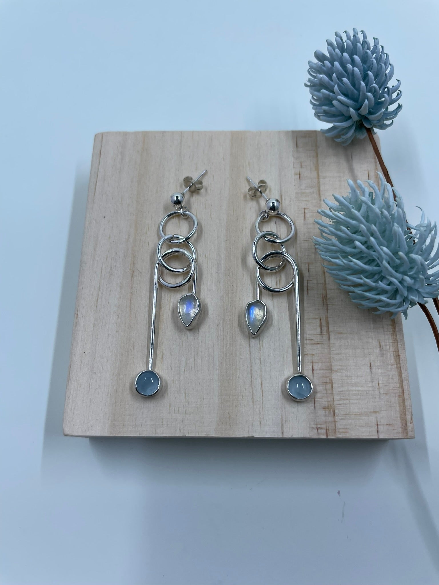 Sterling silver with Rainbow Moonstone and Aquamarine stones