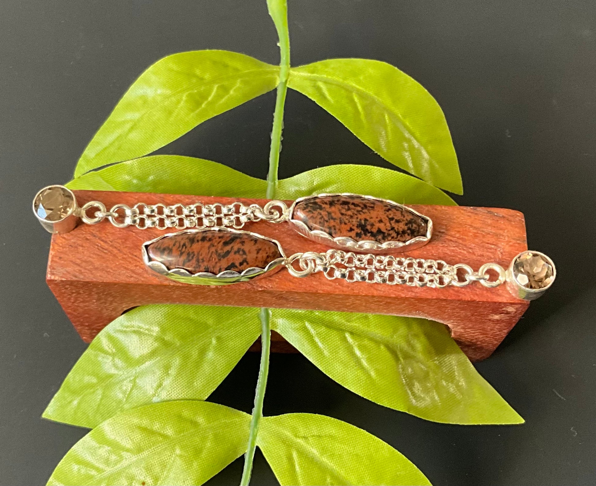 Sterling silver with chain and Smoky Quartz and Mahogany Obsidian stones