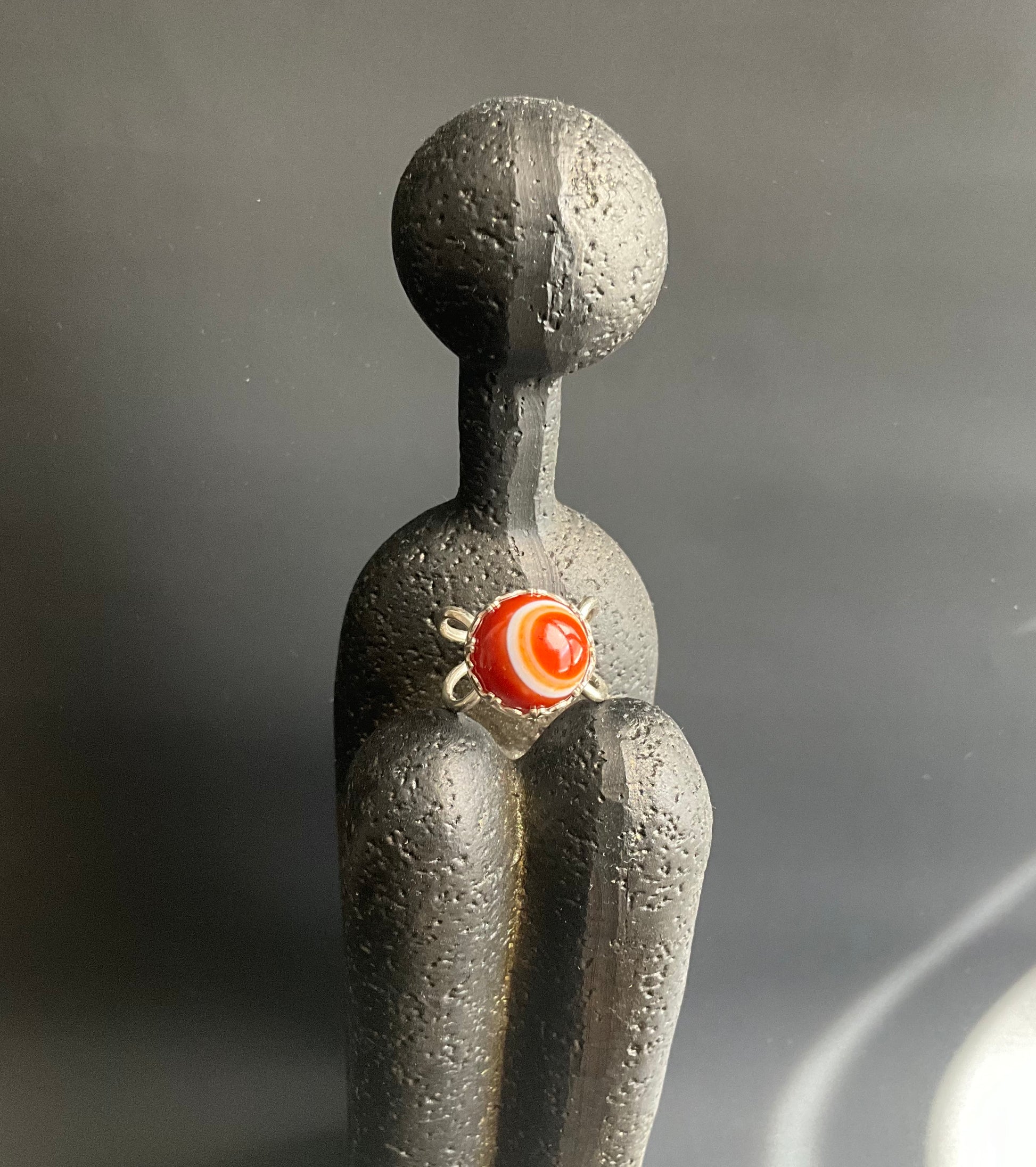 Sterling Silver Ring with a Red Eye Agate stone (Size 8)